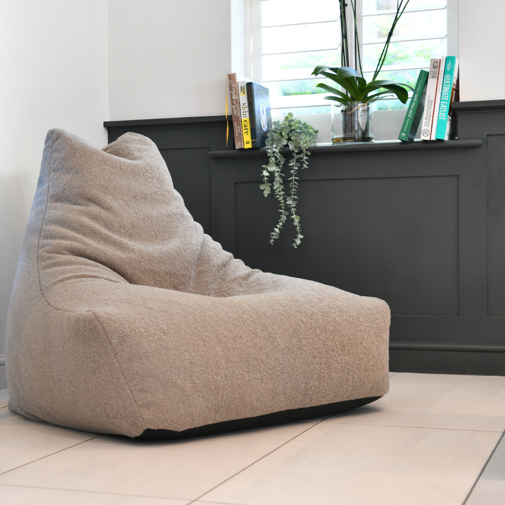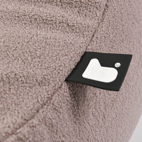 De stof van de b-bag mighty-b is een sterke combinatie van polyester in teddy look en de zitzak is gevuld met polystyrene balletjes.