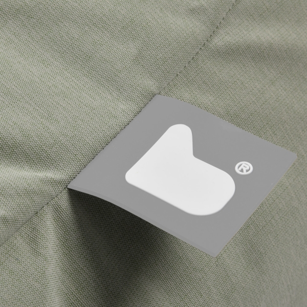De stof van de b-bag mighty-b is een sterke combinatie van polyester en de zitzak is gevuld met polystyrene balletjes. Deze materialen zijn waterbestendig en het UV-filter van 7-8 betekent bovendien dat hij zijn mooie kleur behoudt. Laat hem dus gerust buiten liggen, al is het tijdens de winterse maanden wel handig om hem binnen neer te leggen