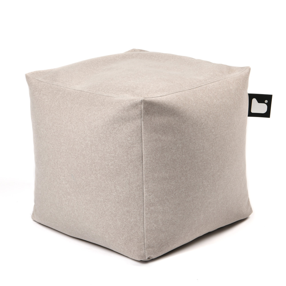De stof van de b-box is een sterke combinatie van polyester in suede met dubbelgestikte naden en de poef is gevuld met polystyrene balletjes. Wordt het comfort iets minder, dan kan je de b-box een beetje bijvullen met polystyrene balletjes.