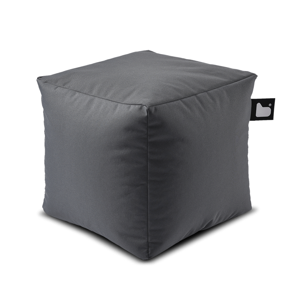 De stof van de b-box is een sterke combinatie van polyester en de poef is gevuld met polystyrene balletjes. Deze materialen zijn waterbestendig en het UV-filter van 7-8 betekent bovendien dat hij zijn mooie kleur behoudt. Laat hem dus gerust buiten liggen, al is het tijdens de winterse maanden wel handig om hem binnen neer te leggen. Wordt het comfort iets minder, dan kan je b-box een beetje bijvullen met polystyrene balletjes.